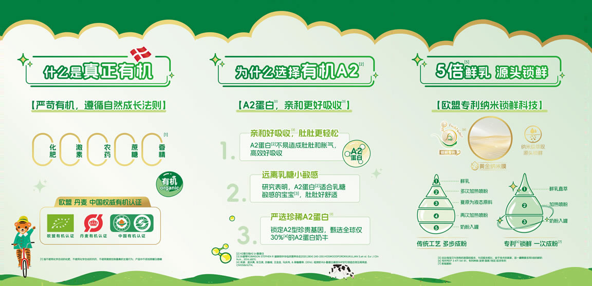 宝贝与我有机3.0 特有「全蔚营养锁鲜」锁住丰富的优质营养;有机A2酪蛋白、100%有机全乳糖;以超高营养效益,支持宝贝全方位健康成长。